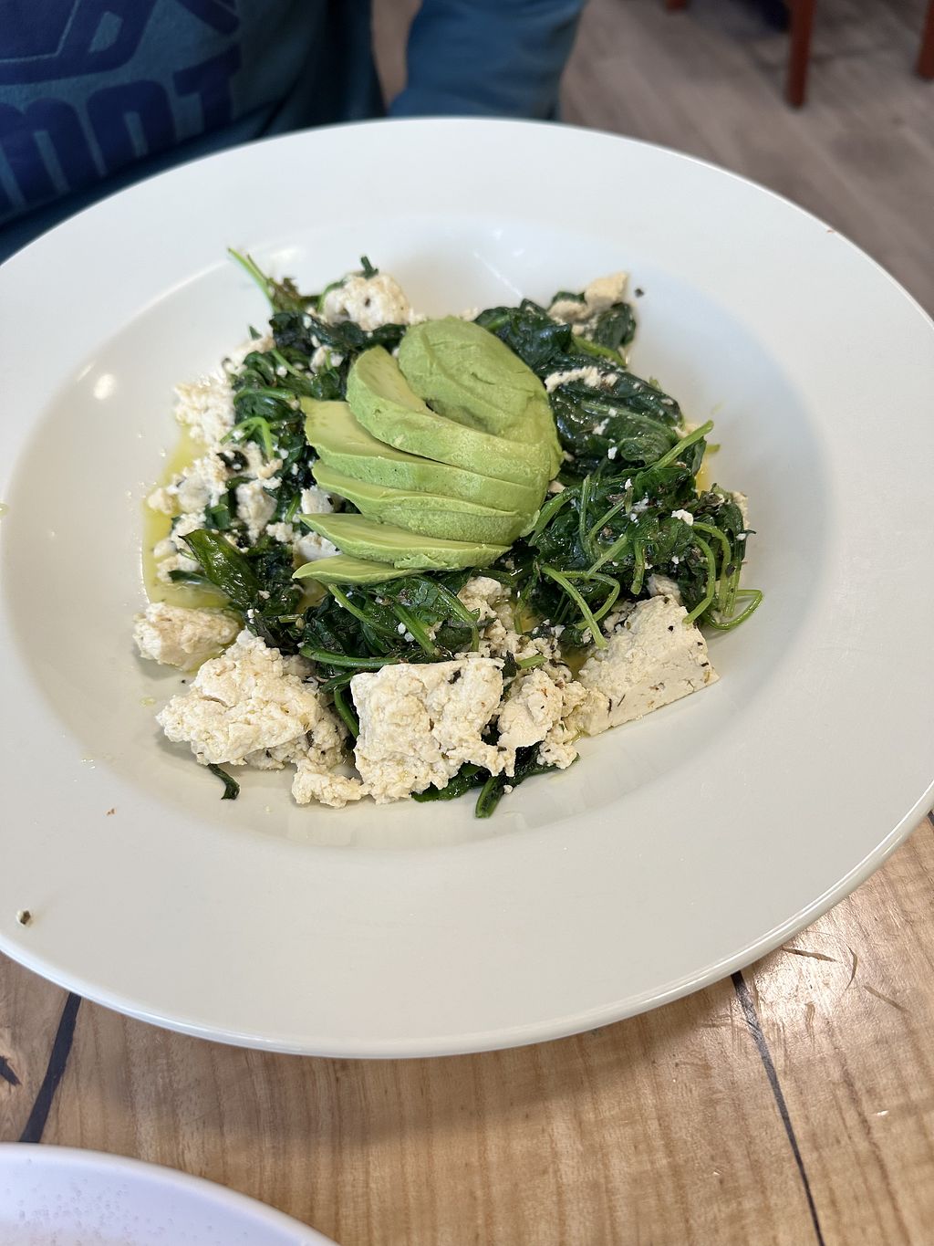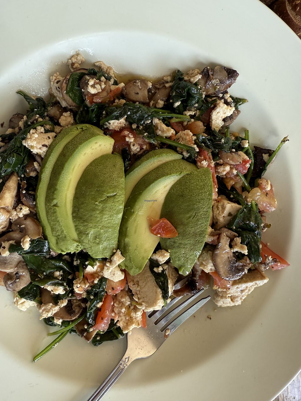My husband got the tofu scramble. It was really lacking any kind of flavor and very oily. I got the vegan pancakes and the texture and flavor just wasn't good. We also had lattes and they were quite flat, too sweet- just not a fan. We won't be back.