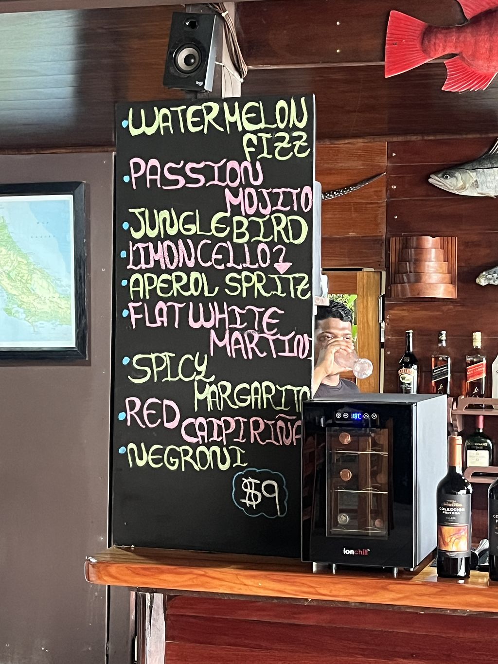 Serves meat, vegan options available. Restaurant overlooking the bay. Offers a watermelon ceviche, vegan curry and vegan nachos. Open Mon-Sun 12:00pm-9:00pm.