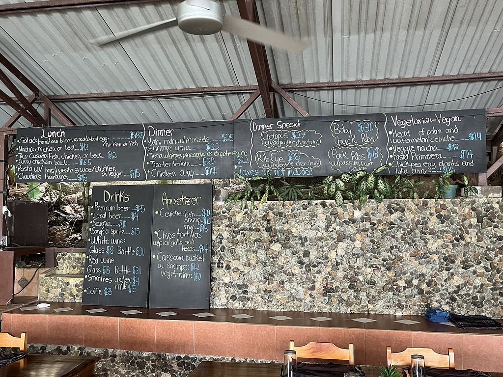 I had the vegan curry, and it was pretty tasty. There were only about 6 pieces of tofu, but I bought some at a supermarket and a small block was hella expensive. Nice view, good cocktails. One of the more expensive restaurant in Drake Bay.