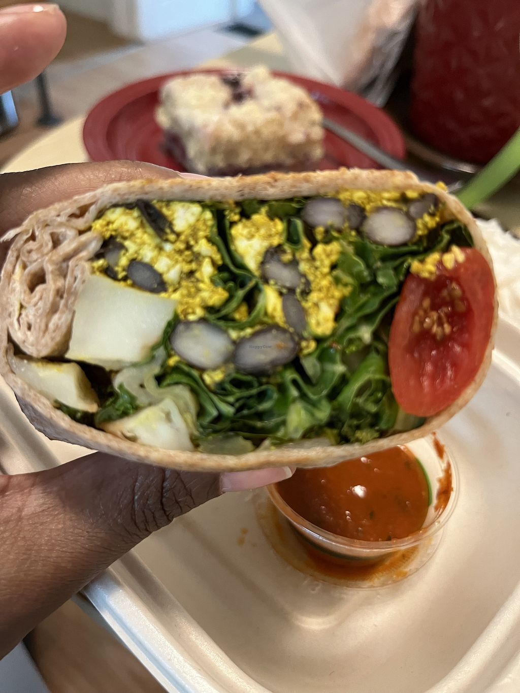 I grabbed the loaded breakfast burrito on the go. Nothing spectacular, but it was filling. The red sauce could have made it better. It was bland.