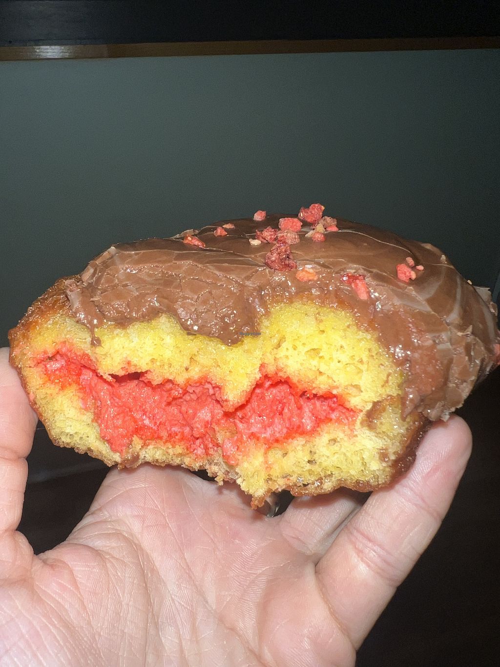 chocolate raspberry cupcake. moist cake, but the gold nonpareils were …