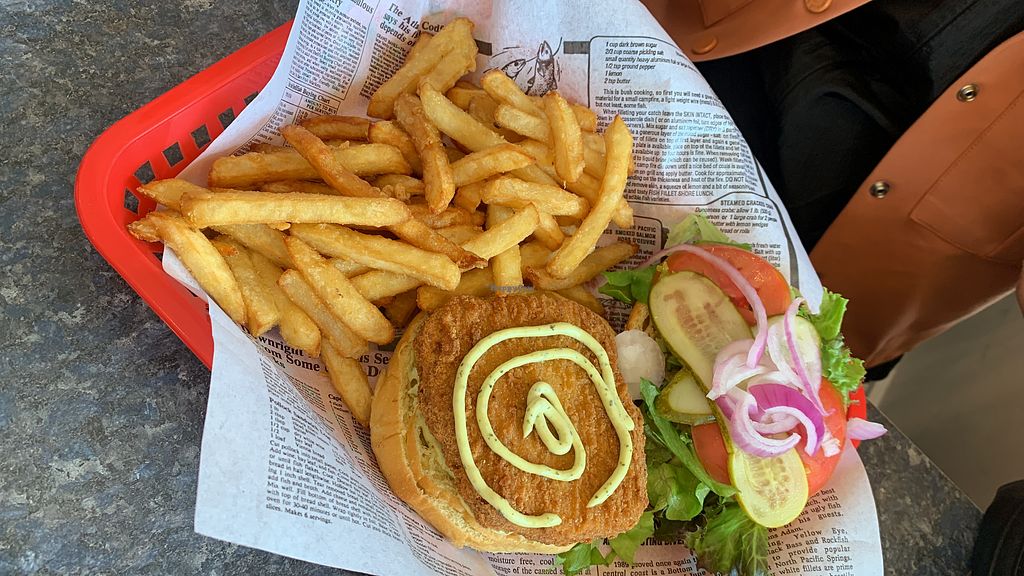 Read moreBoth the vegan chicken burger and the vegan fish sandwhich were good