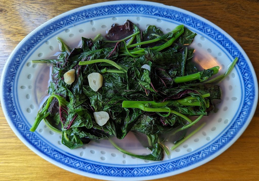 The Garlic Purple Amaranth was a dish of flavorful greens. The Buddha's Purse dumplings were filled with peanuts and shallots. I liked the Curried Green Peas Claypot, but wish it included more tofu. Even though the Pan-Seared Chive and Mushroom Buns were somewhat bland, I enjoyed their fluffiness. However, I did not like the consistency of the Peanut and Coconut Mochi. It was served warm, so it was extra sticky.