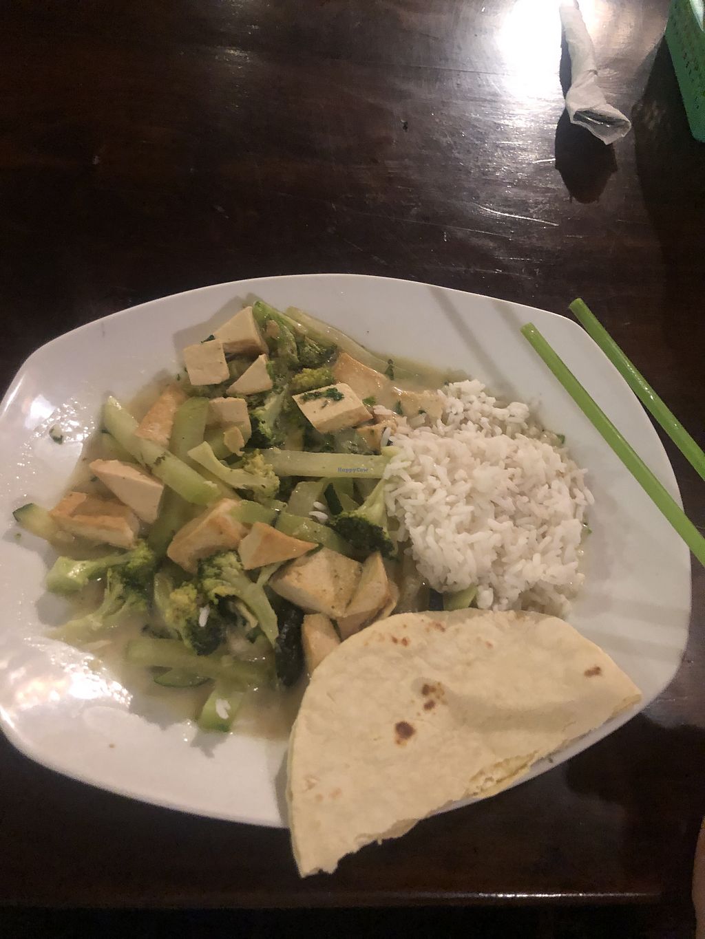Pedi el curry Bombay con tofu y estaba maravilloso. Increíbles aliños, una gran porción y muchas verduritas y tofu. No pica, pero te pasan muchas salsitas picantes. Lo recomiendo muchísimo.