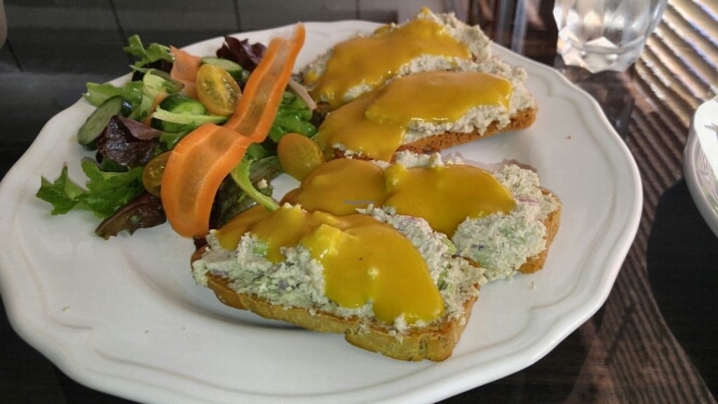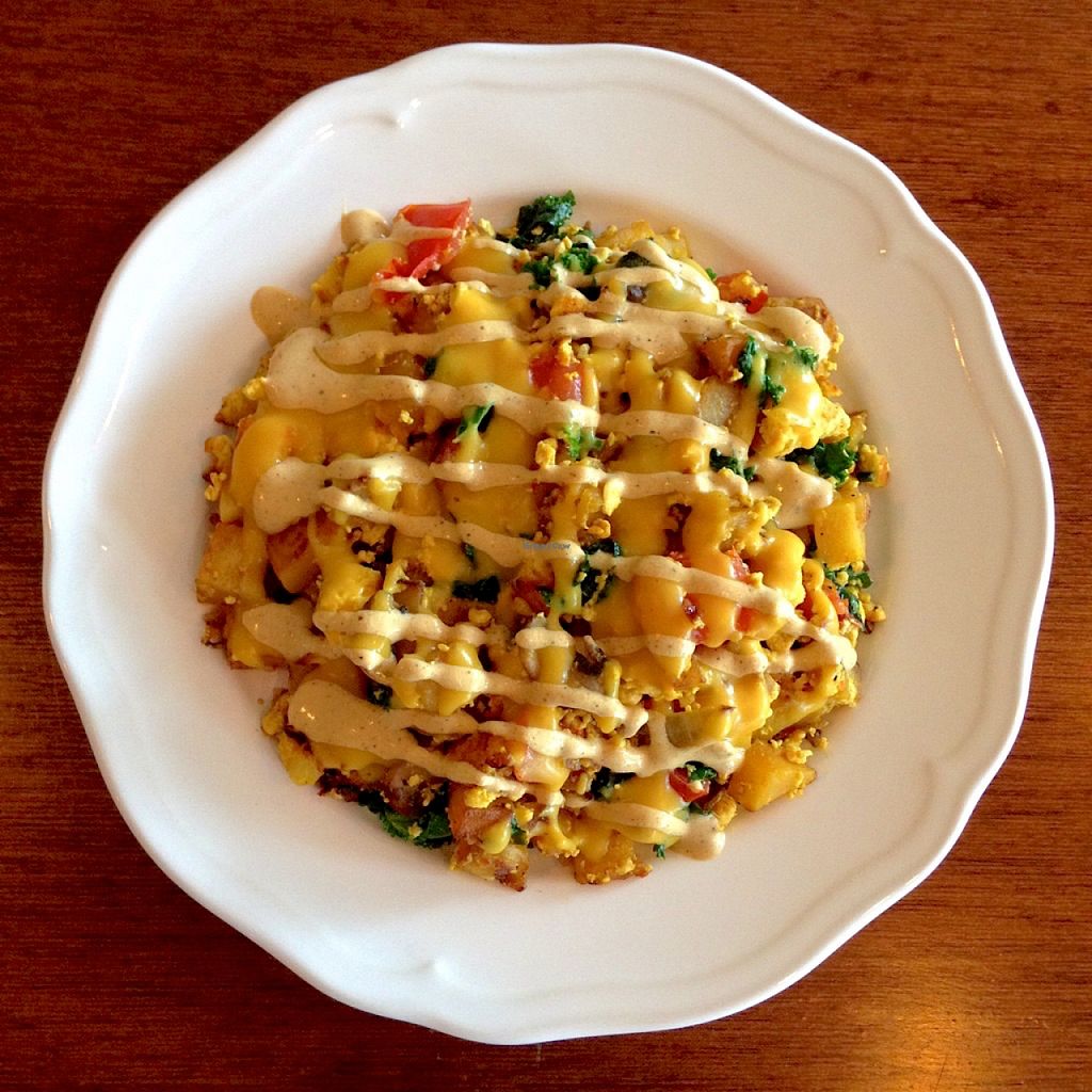 Vegan eatery offering a short menu with dishes like caesar salad, avocado fries, sunflower seed "tuna" melt, baked ziti, and a selection of tea. For dessert choose from ice cream sundae, chocolate cake, and apple strudel. Brunch all day on Saturday and Sunday, which has tofu scrambles and French toast. Reported closed July 2020.