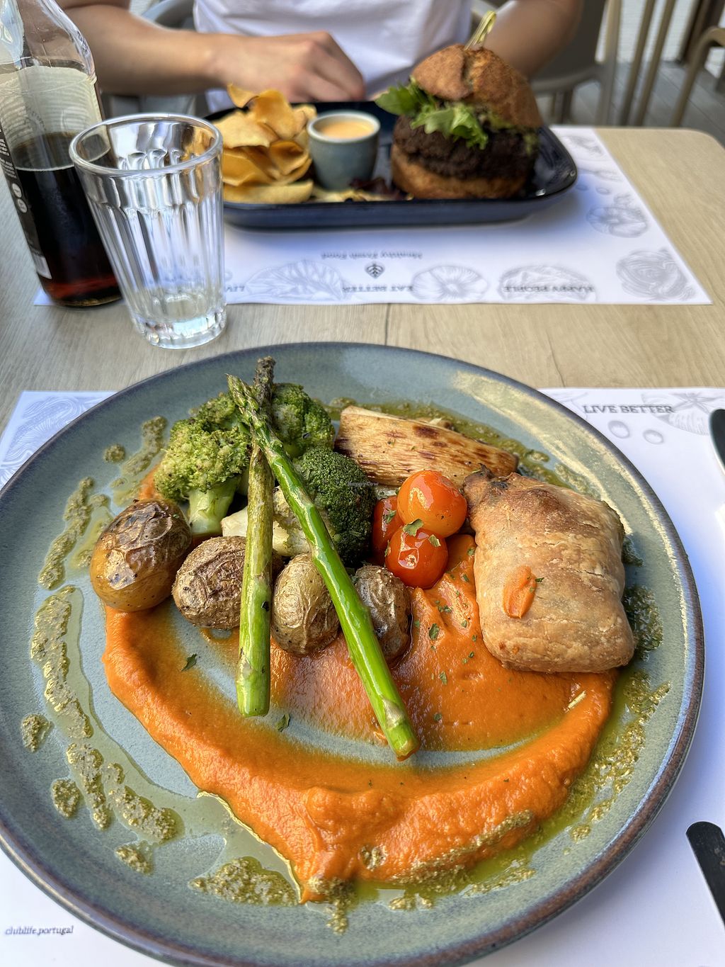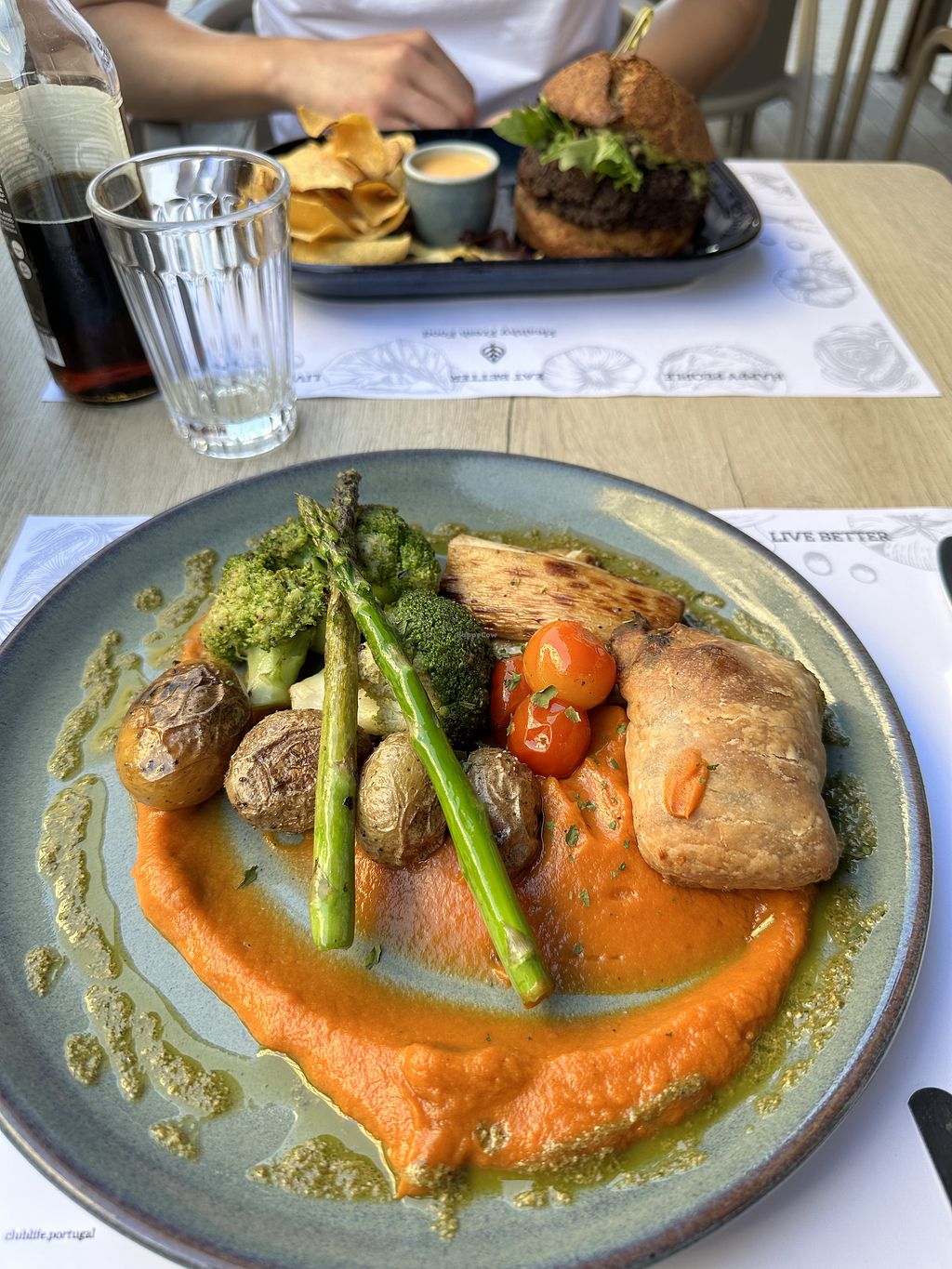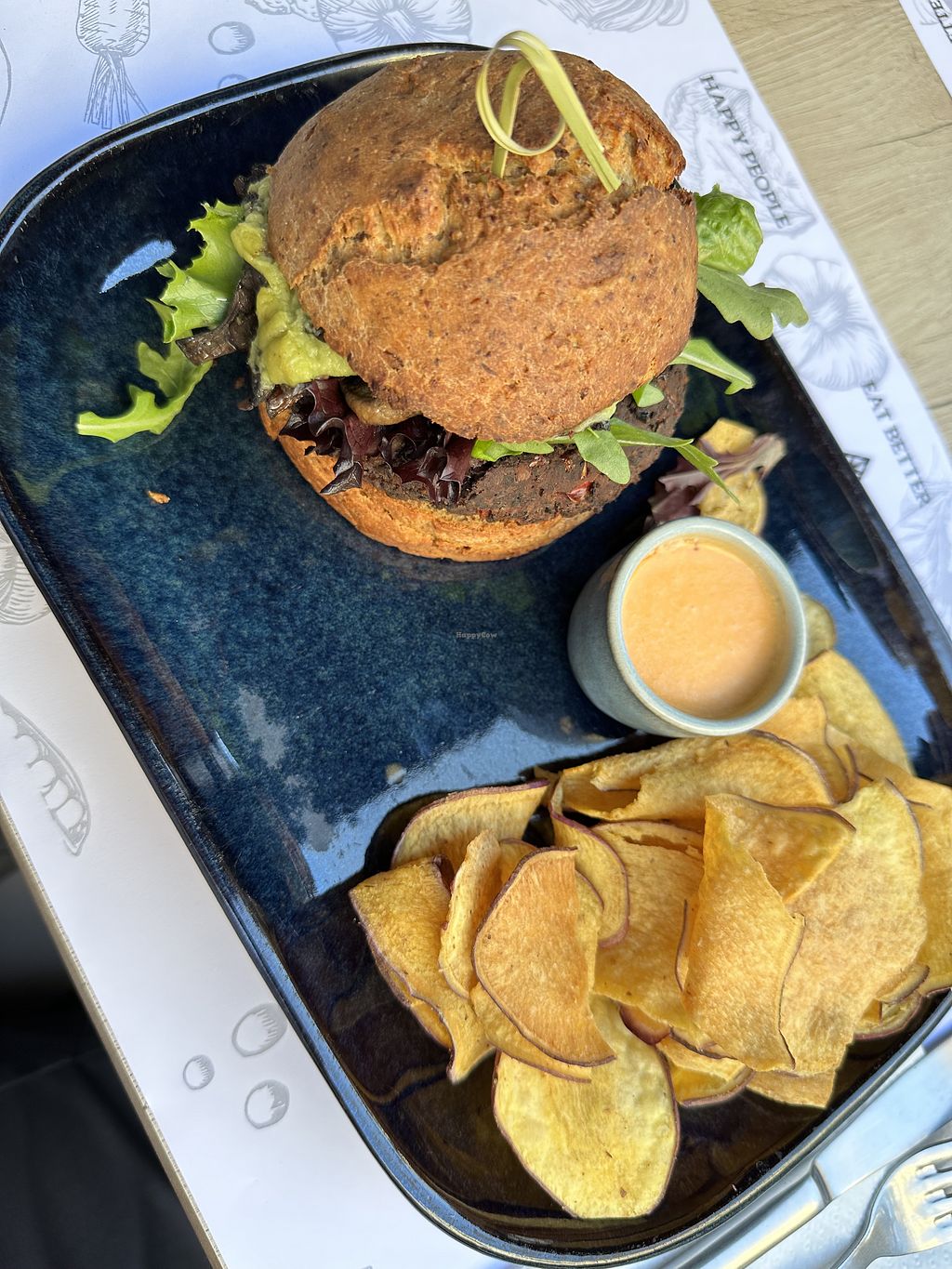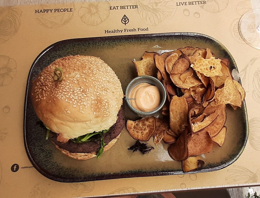 Bean burger with sweet potato chips