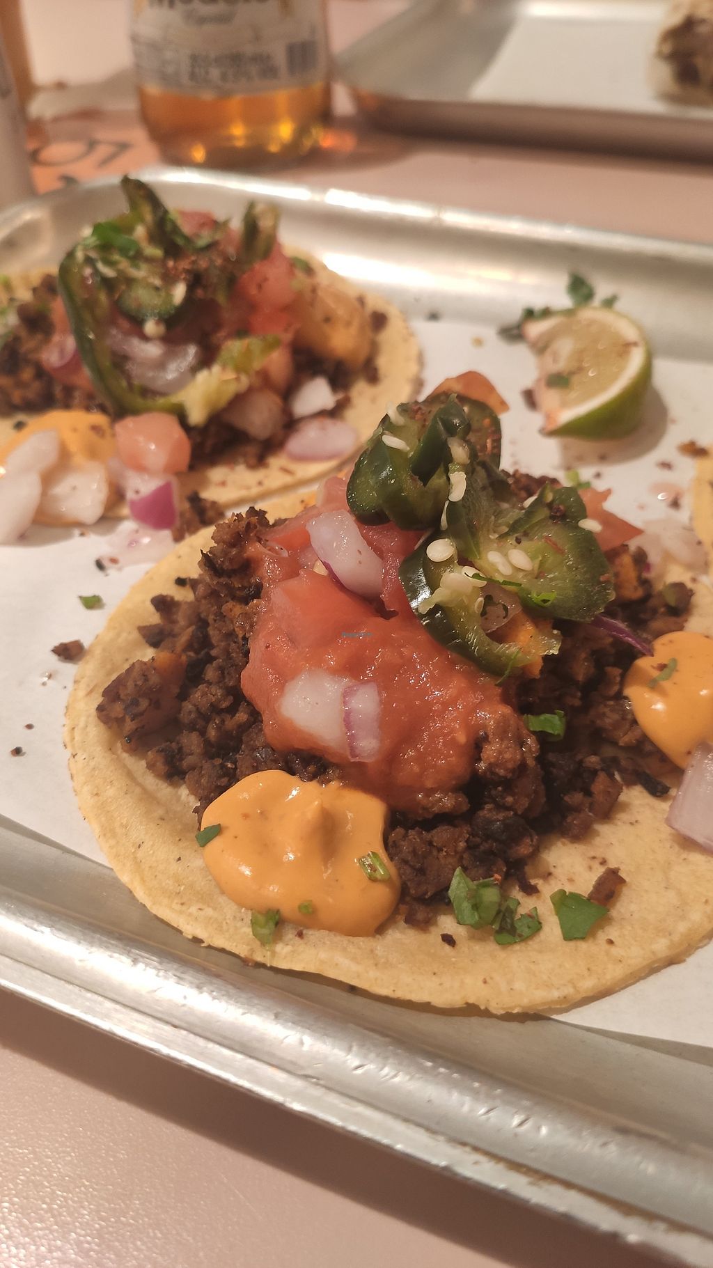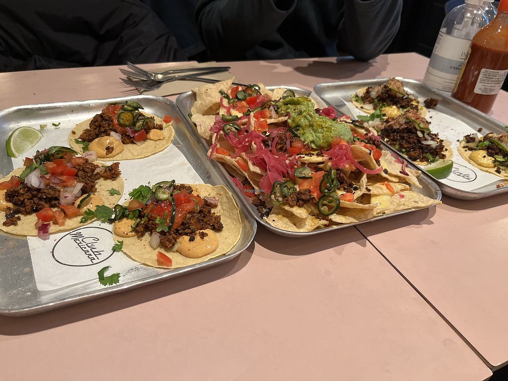 I tried all their tacos and they are all delicious. Also good nachos, especially for the “cheese” sauce (better than traditional cheese).