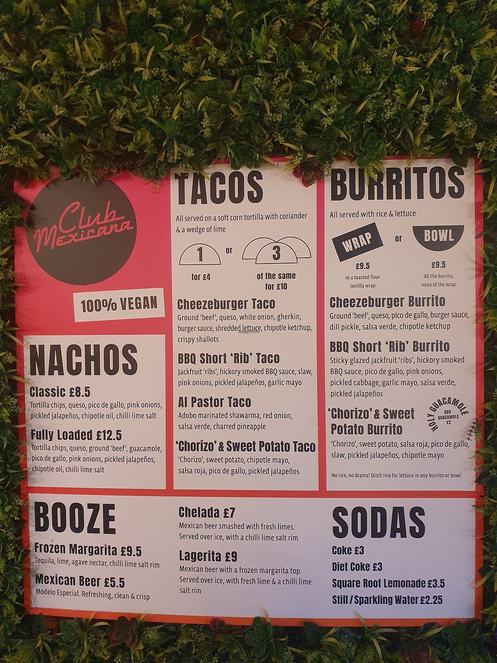 Mexican street food kitchen operating at different London markets. This location has it's own designated space with separate entrance and seating. Serves vegan tacos, mock chick'n wings, cheesy fries, burritos, and nachos. Reported closed January 2024.