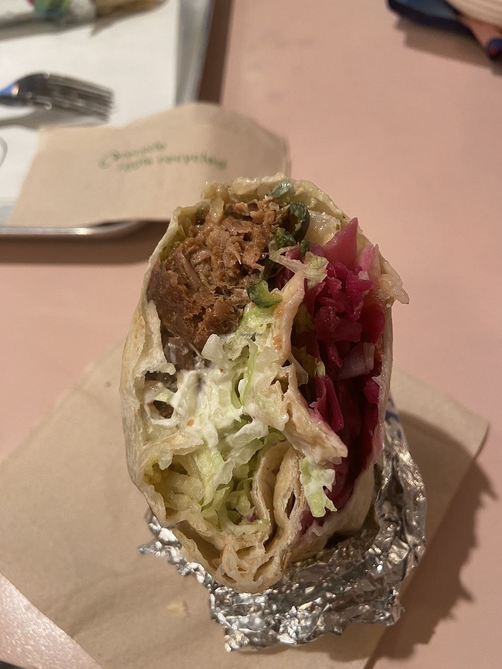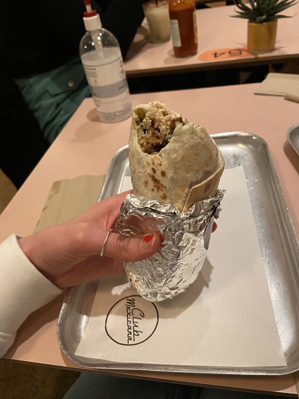 I had a burrito here for the first time a few months ago - and whilst not quite as good as the supreme 'rib' taco - it was scrumptious and very filling. Seems a bit pricey at the outset but definitely worth it for how satiating it was, will be purchasing again!