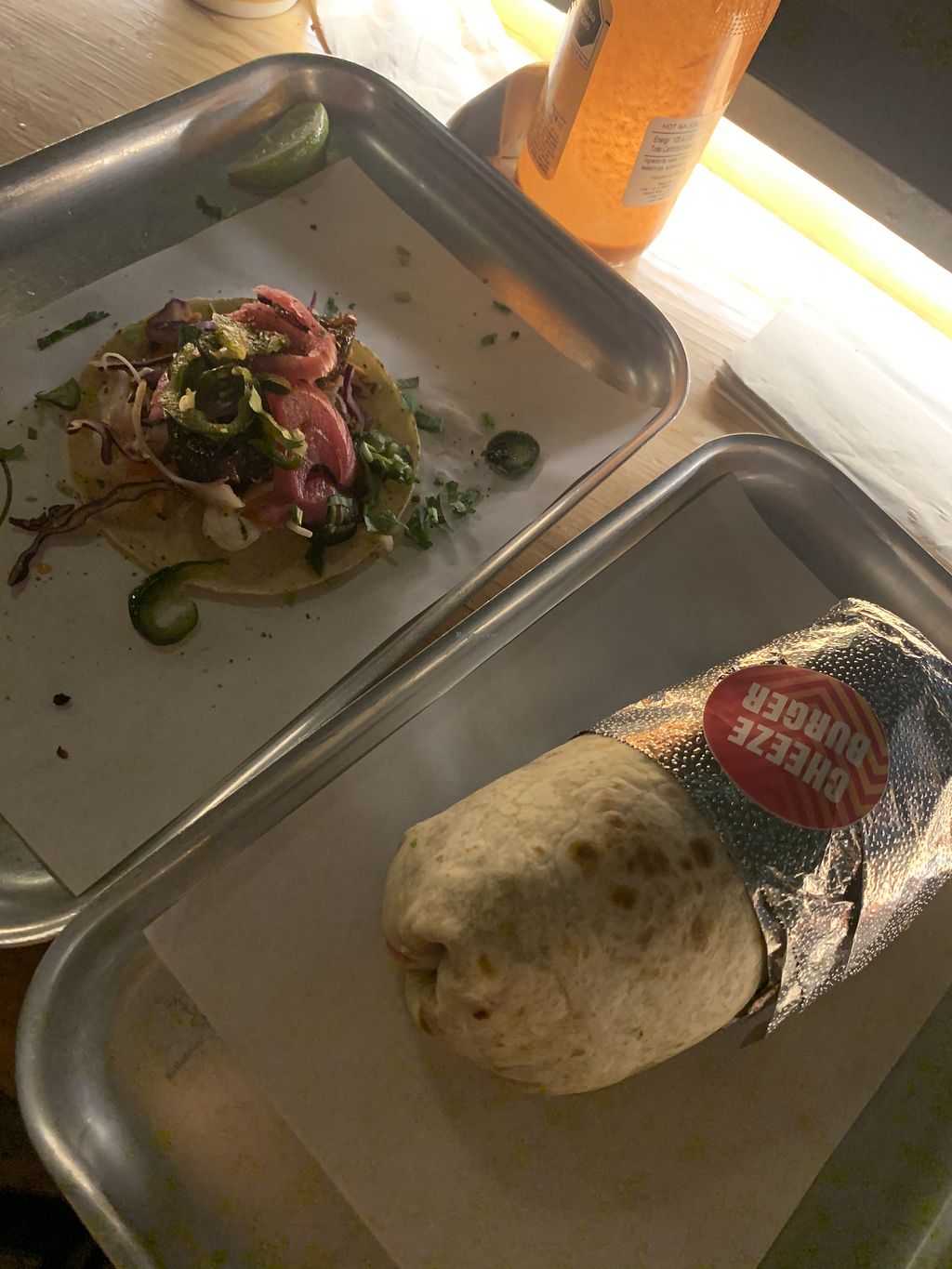 Really enjoyed the cheezeburger burrito and I tried a taco as well! Quick service, tasty food.