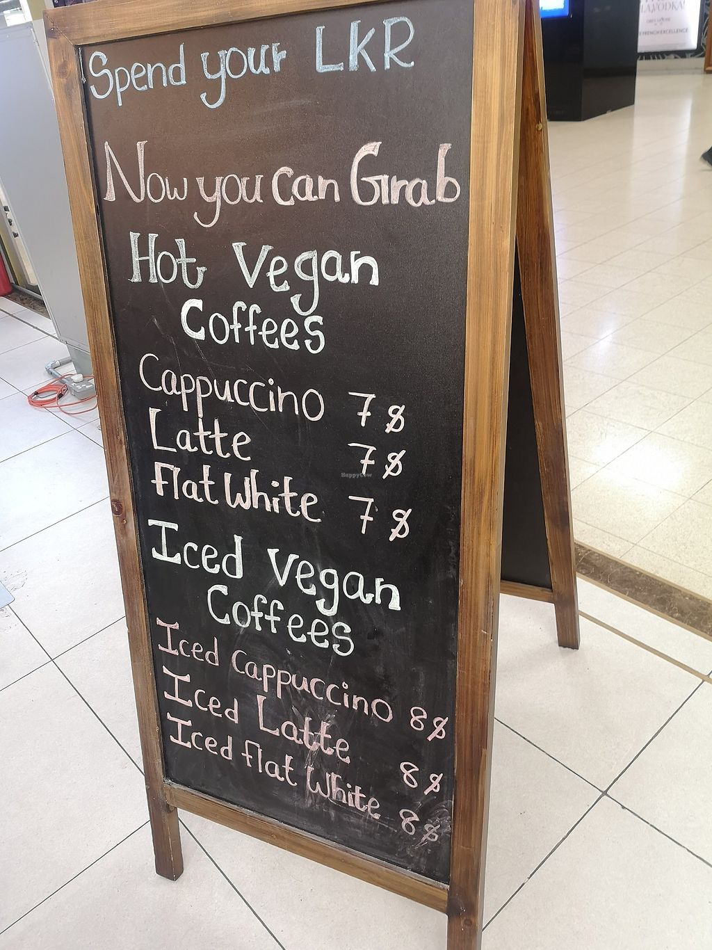 Cafe located at the Bandaranaike International Airport transit area offering plant-based milk for coffee & tea and at least one vegan dish like green Thai curry.