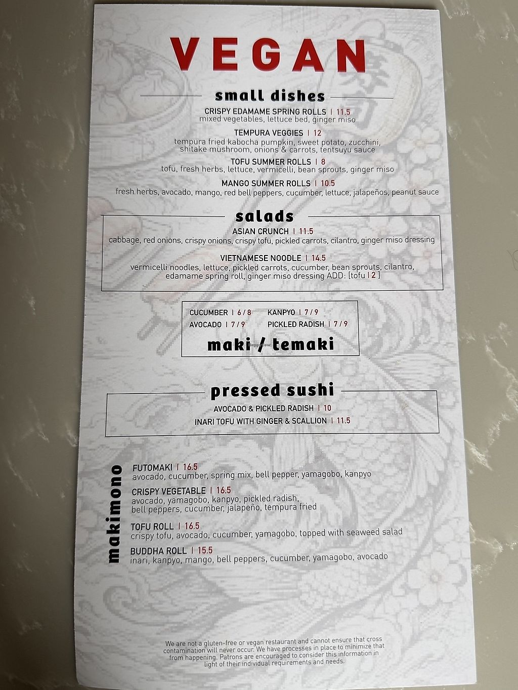 Went here for dinner with omnivore friends and had a really nice meal. I asked for the vegan menu-not the most extensive, but a couple of options for appetizers and entrees, split spring rolls with a friend and got the udon noodle bowl. Both were good sized portions and I was definitely not hungry afterwards. Also very good cocktails! Everyone enjoyed their meals-would definitely come again.