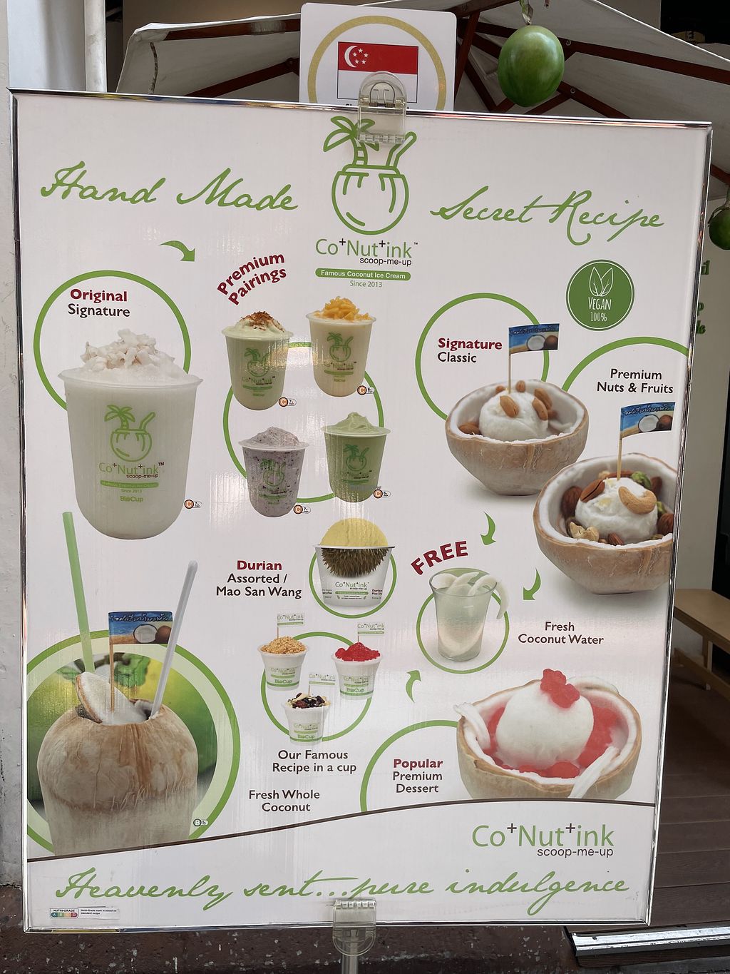 Premium coconut ice cream served inside a coconut, with dried fruit anβ¦