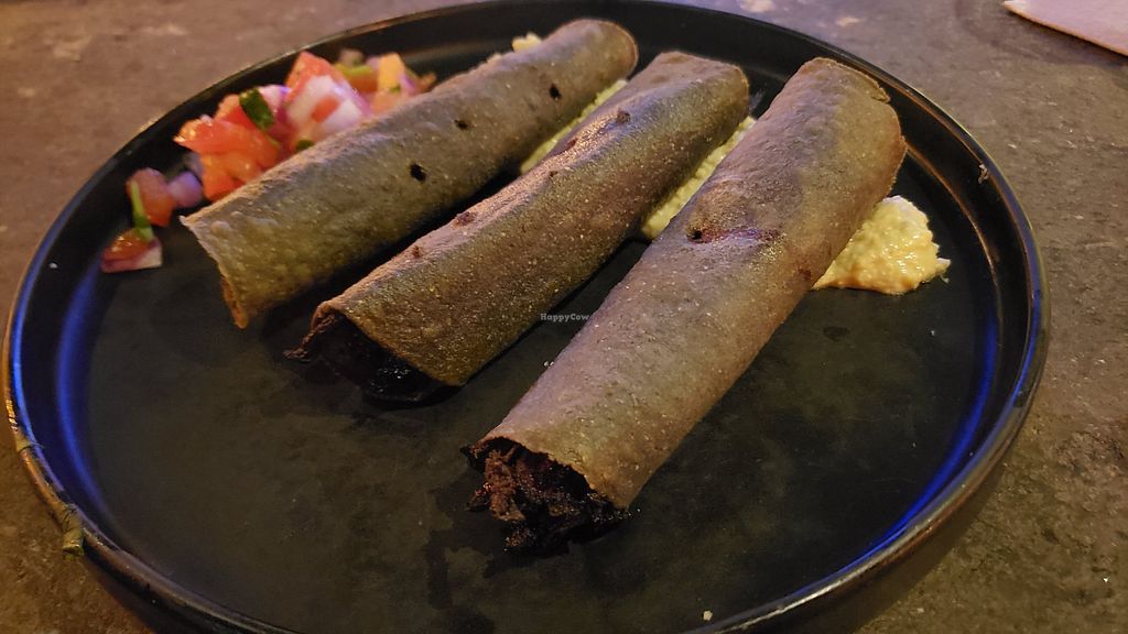 Taquitos de jamaica ($12). Tasty hibiscus taquitos. A bit sticky. Wish…