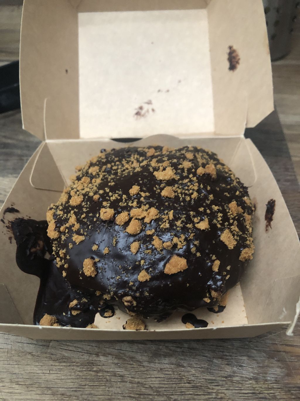 Berlina bañada en chocolate negro y topping de galleta Lotus.