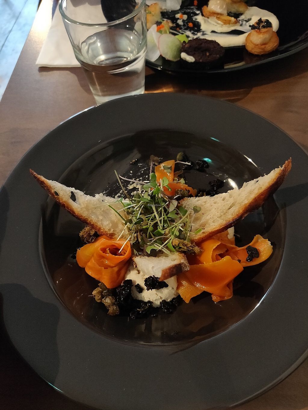 Soya schnitzel with duchess potato, mushrooms, broad beans and tartare…