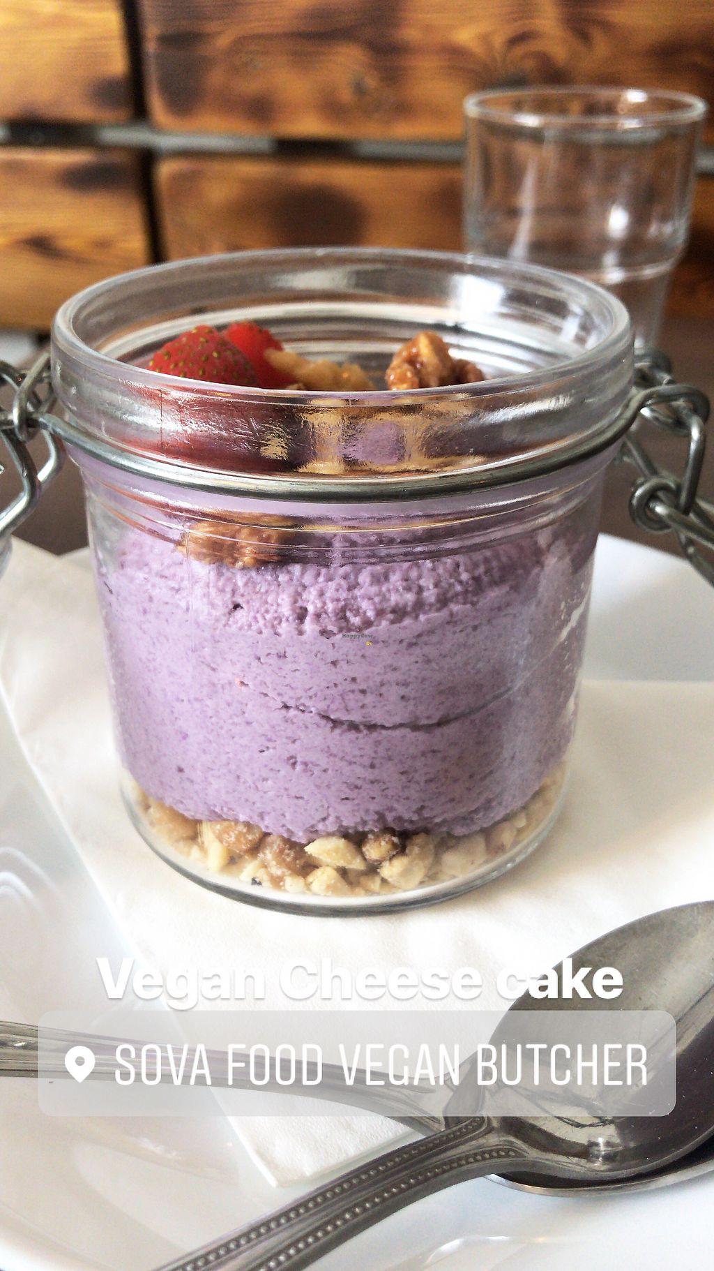 Scallops and salmon dish for starters were delicious, fishy carrot rolls and chewy “scallops” with the cheesiest of cream cheese. Not huge starter portions but you need to save space for the mains which are rather impressive! Super flavoursome seitan steak and chicken schnitzels were what we went for and the mushroom dressing for the steak was the highlight. Lovely little roast potatoes and well seasoned mash too. Desert was not too filling which is ideal after such a great main, the mousse was nice but had nothing on the cheesecake. As someone who is regularly disappointed by vegan cheesecakes I wholly endorse this one. Comes in a cute glass bowl with not too much breadcrumb base and although you still get the blended nut texture the cheesy flavour is on point. Staff were friendly, artwork was lovely, music was eclectic. Fine dining made approachable and affordable without skimping on any of the quality👌🏼
