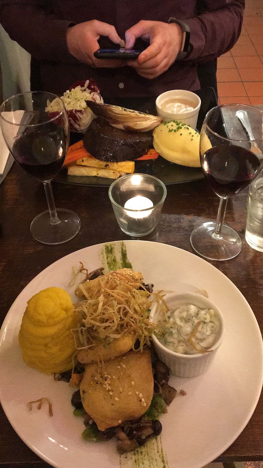 The food was very good, I had the soya schnitzel, the mushrooms that came with it were especially tasty and also the sauce with dill. My partner had the seitan steak and he really liked all it came with, especially the potato and the pepper sauce.