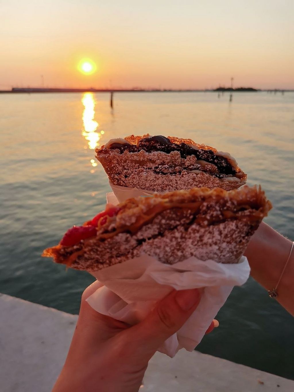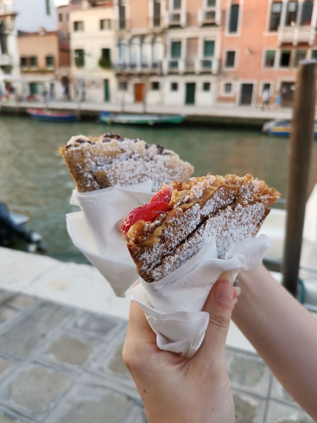 Sweet Crêpe: chocolate with banana and almond & mango cream with straw…
