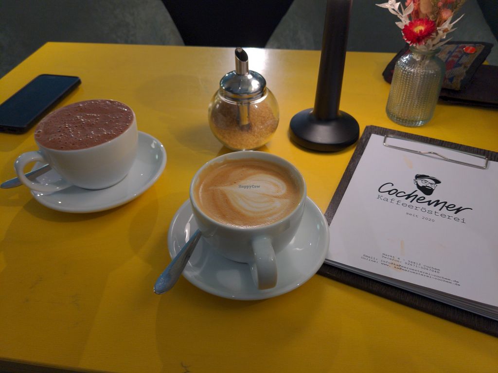 Eines der wenigen 'hippen' Cafés in Cochem Hafermilch gegen Aufpreis, somit Kaffeegetränke oder Trinkschokolade mit 100% Kakao in vegan möglich (bitte bedenken, dass die Trinkschokolade dann sehr sättigend und bitter wie 100%ige Schokolade ist, eine kleine reicht vermutlich ;-)). Zu Essen leider keine vegane Option.