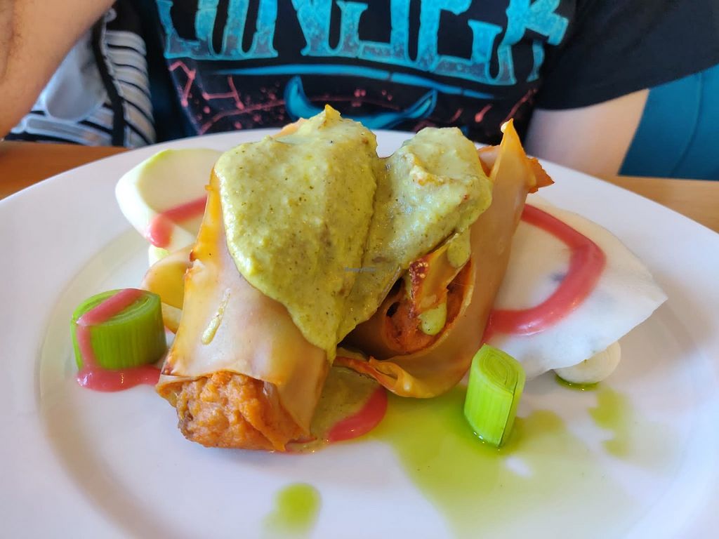 Spring Rolls (tofu) with mango curry sauce and lime jelly