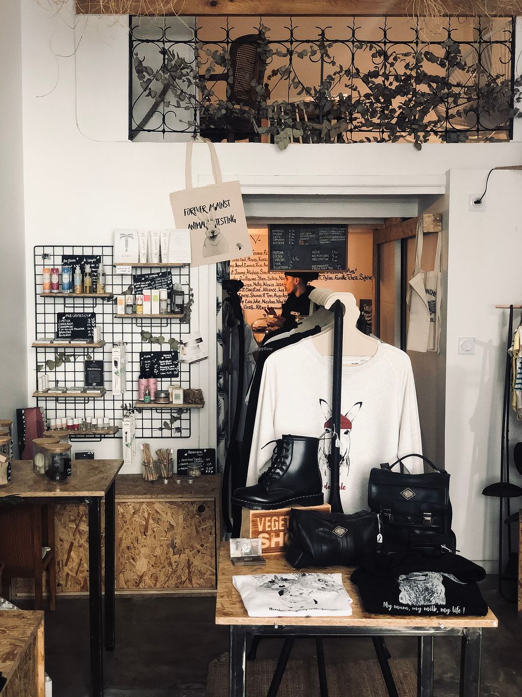 Lovely shop with only ethical and cruelty free brands : clothes, beauty products, shoes, food and health products. It's also a coffee shop. Juices are really fresh and healthy. There is snacks, cookies etc...