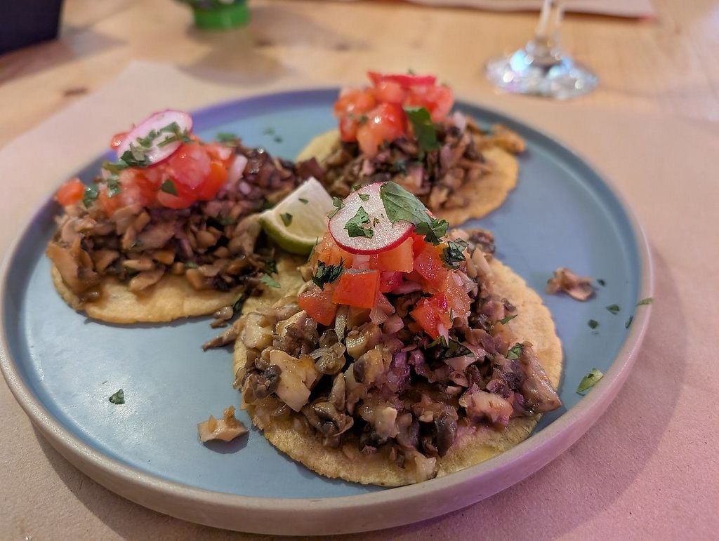 The mushroom tacos were outstanding and their spicy sauces were delicious