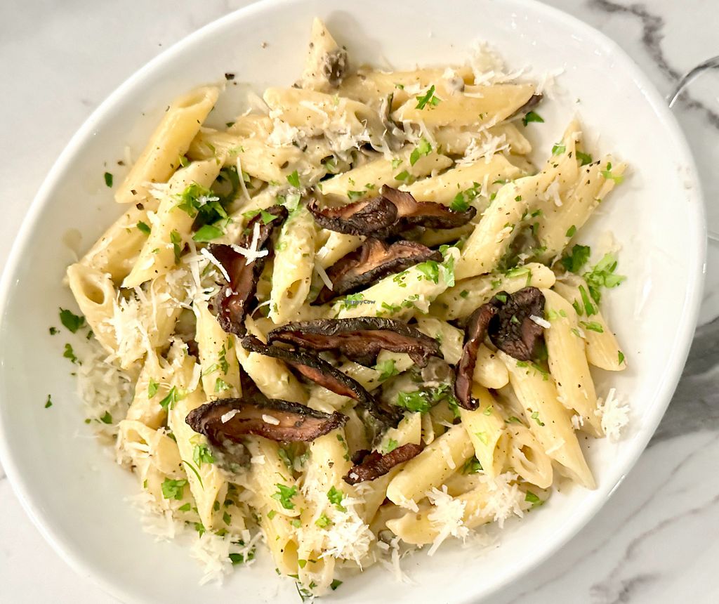 Cashew-Based Penne Alfredo with Wild Mushrooms