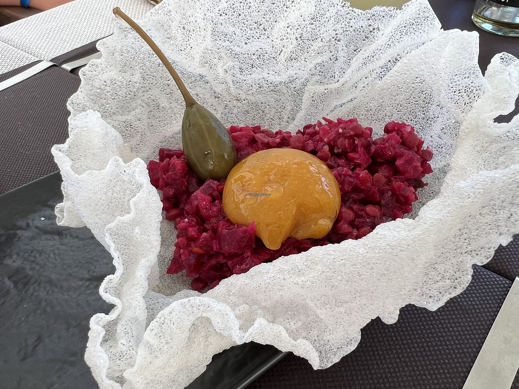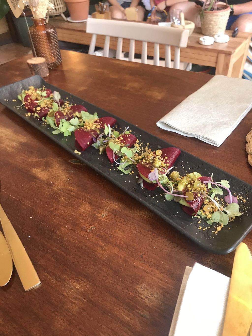 "Chicken" left A, corn puree, black rice, smoked beetroot and yoghurt …