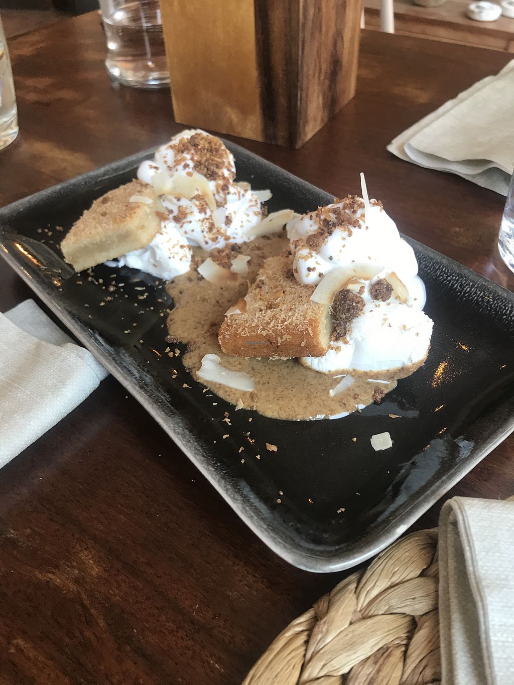 Mango and basil Panna cotta, yuzu jelly and gingerbread