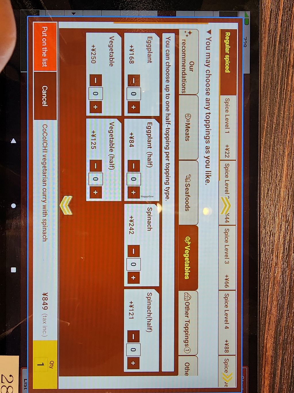 ZANMAI curry with spinach, mushrooms, eggplant and mixed veggies