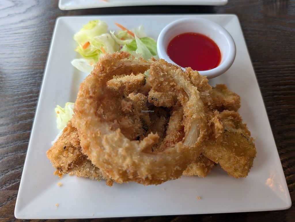 Lovely food, good range of dishes that can be made vegan, all indicated on the menu. Two vegan starters: tempura vegetables and spring rolls - both delicious. Great atmosphere, lovely attentive staff, perfect location right by the station. We loved it.