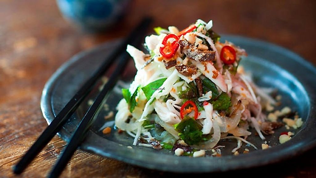 Serves meat, vegan options available. Vietnamese brasserie offering several vegan dishes, including goi cuon, bun, and pho. Confirmed closed, Jan 2021.