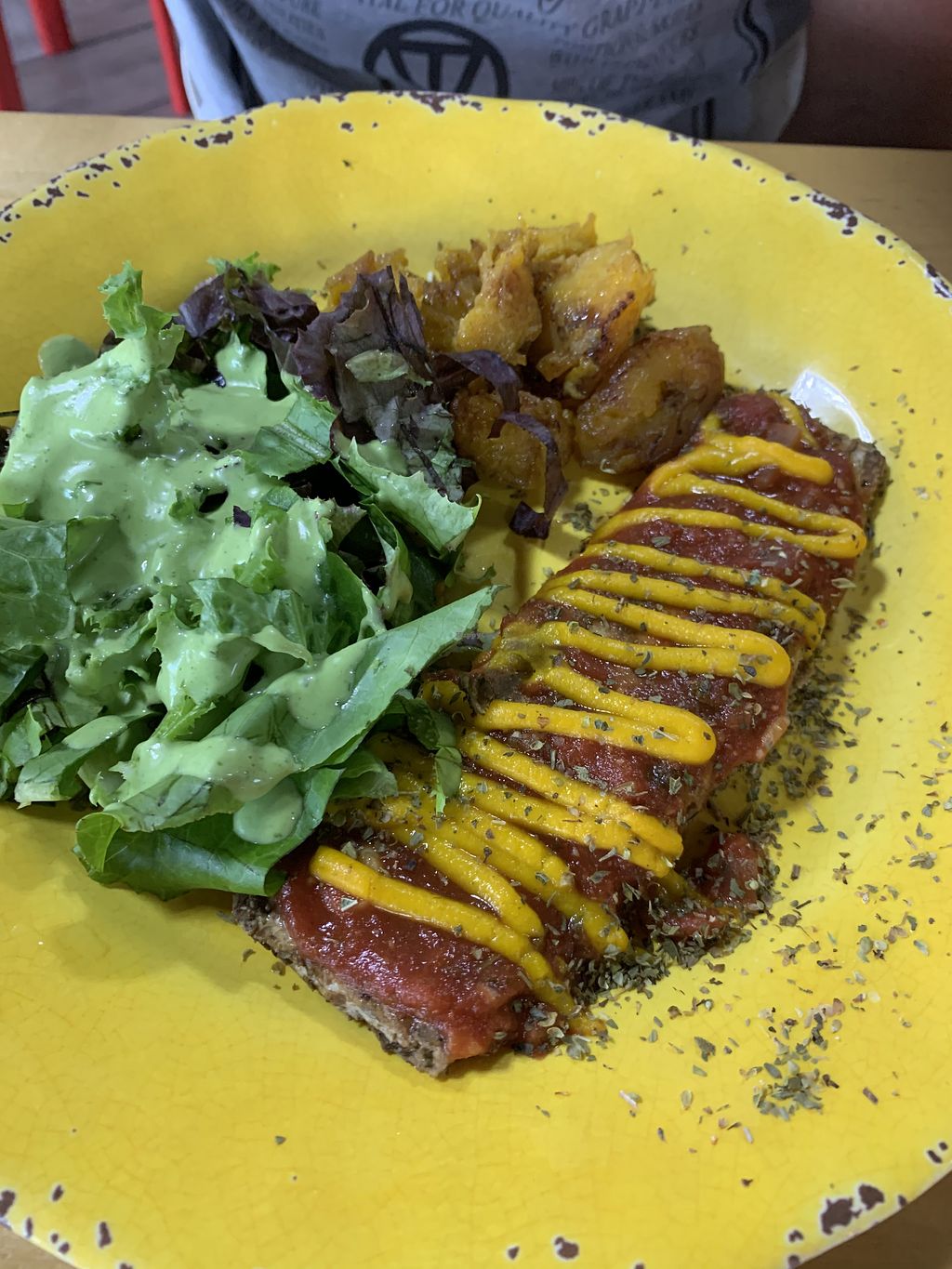 vegan vegetable lasagna, rice (?basmati) and black beans