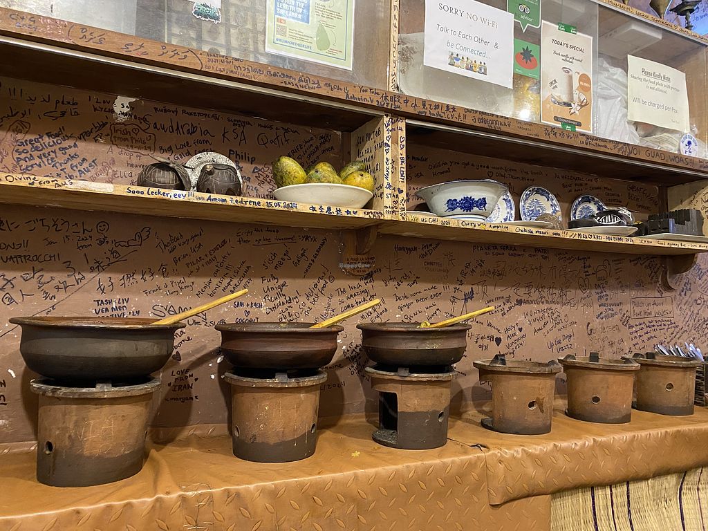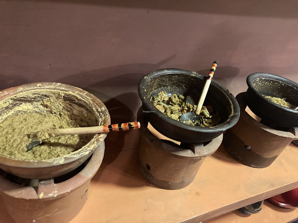 Food is made fresh and put out in clay pots