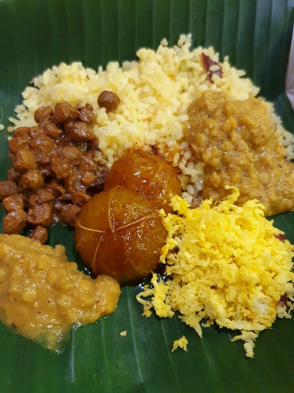 Help yourself to rice, dahl, curry, chutney and coconut sambol!
