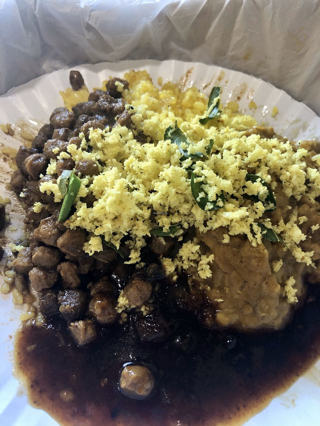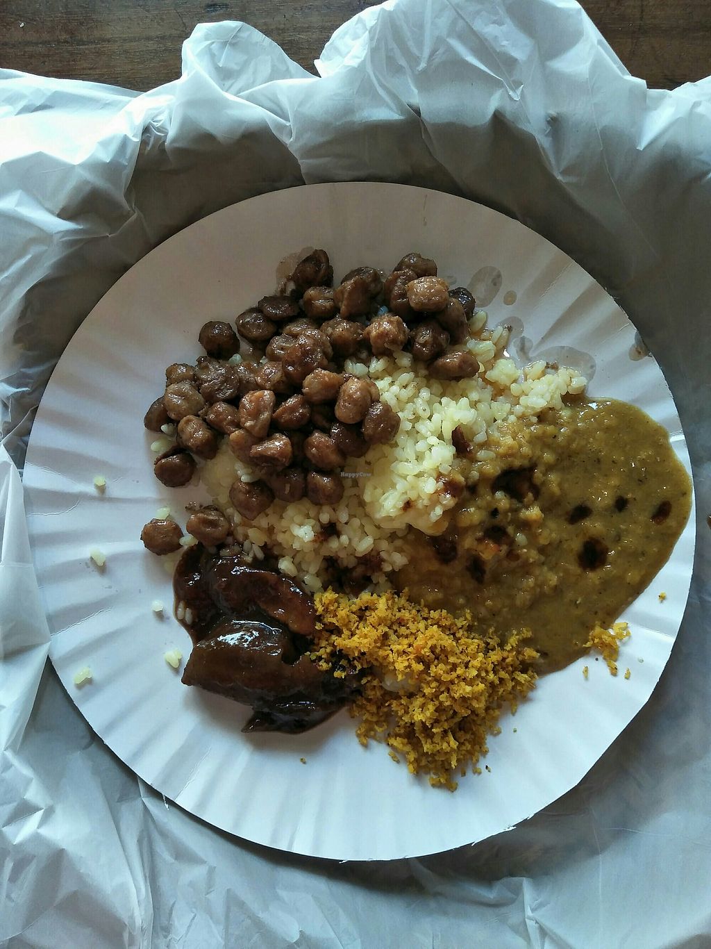 The four vegan choices and rice.