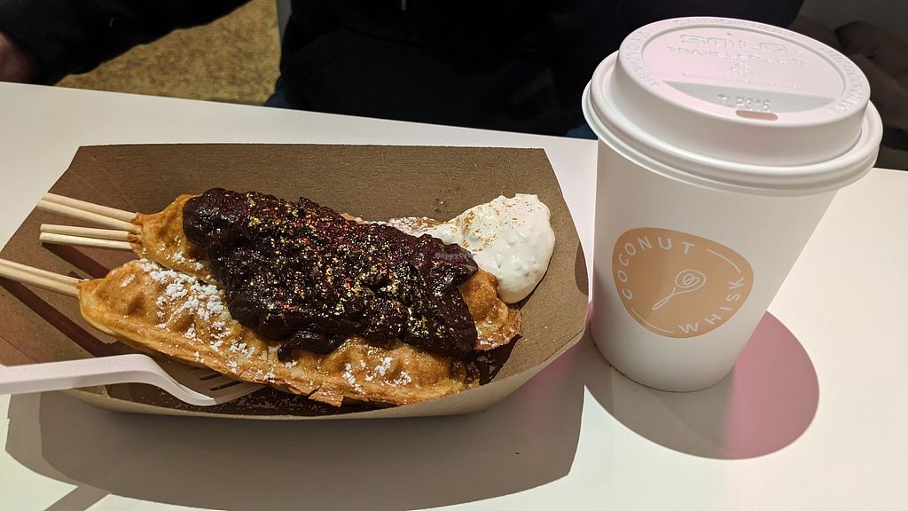Chocolate ganache waffle fries with a peppermint latte