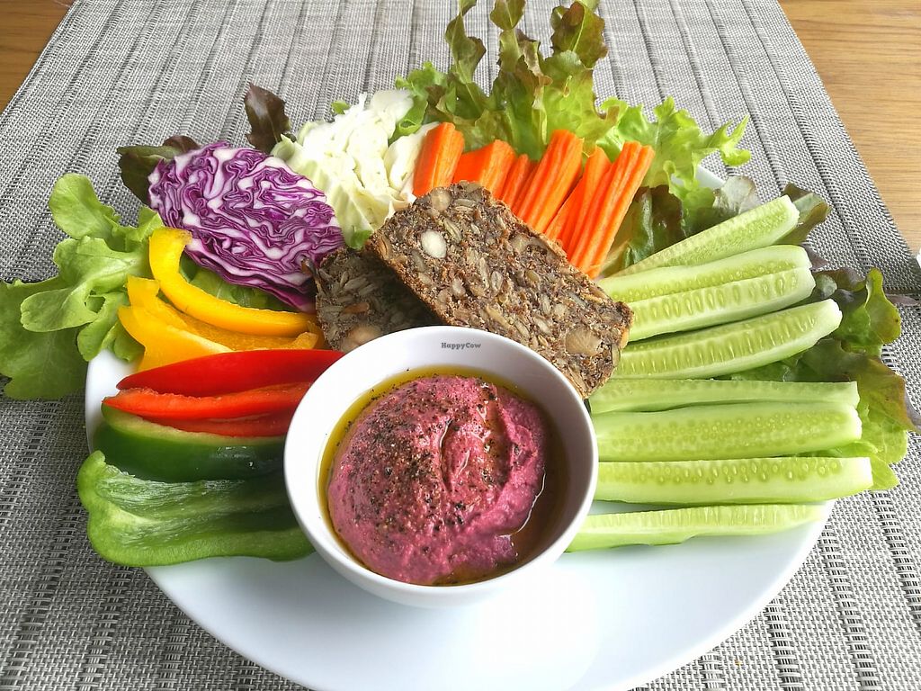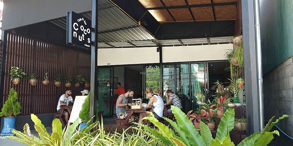 Serves meat, vegan options available. Cafe and bar with menu of Thai and western style dishes for breakfast and lunch. Among the choices are green curry, laab with soy protein, nam prik oong with soy protein, banana leaf salad, hummus plate with house-made nuts & seeds bread. The Thai dishes are vegetarian by default and can be ordered vegan. Coffee drinks can be ordered with almond or rice milk. The smoothie bowls are vegan made with rice milk. Reported closed January 2022.