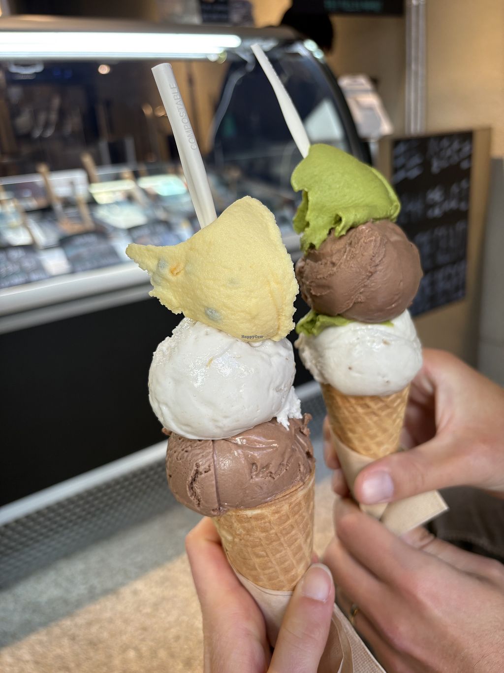 If you do for the double scoop come be aware that it is not very stable. I was trying to tentatively scoop at my ice cream and I sent it all tumbling off the cone. Fortunately, I caught it and was ready to carry on eating from a cup. The staff member kindly made me a new one which I was even more tentative with and successfully ate it all. I'll get a cup if I find a chance to go back.