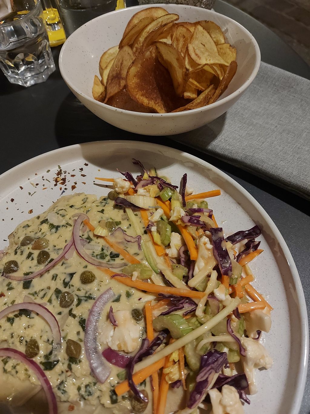Menu dès le Poireaux vinaigrette Mayonnaise wasabi, algues nori, crum…