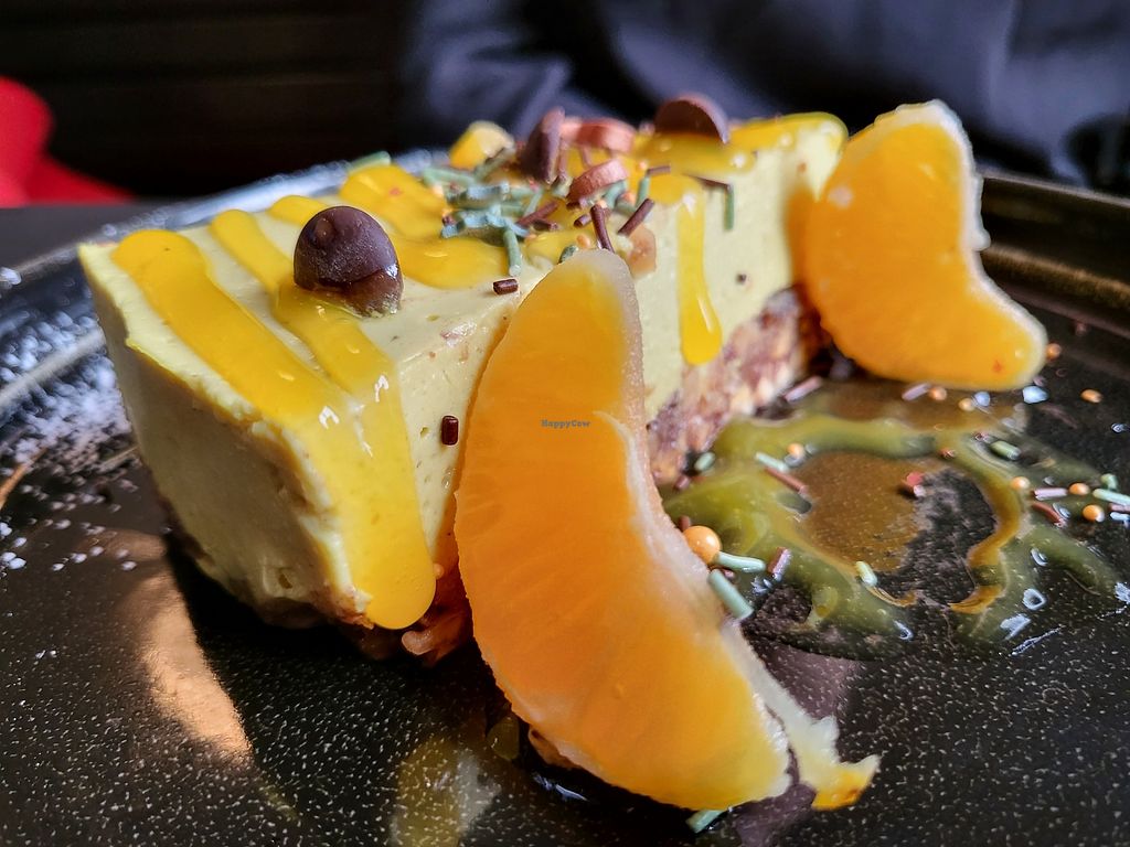 Cheesecake mandarine Biscuit cru date/cacahuète, crème de cajou CHF …