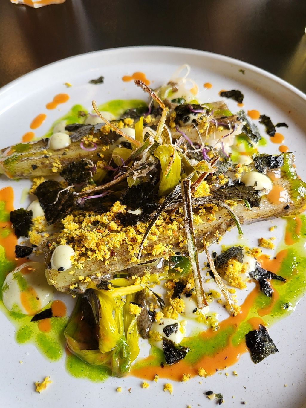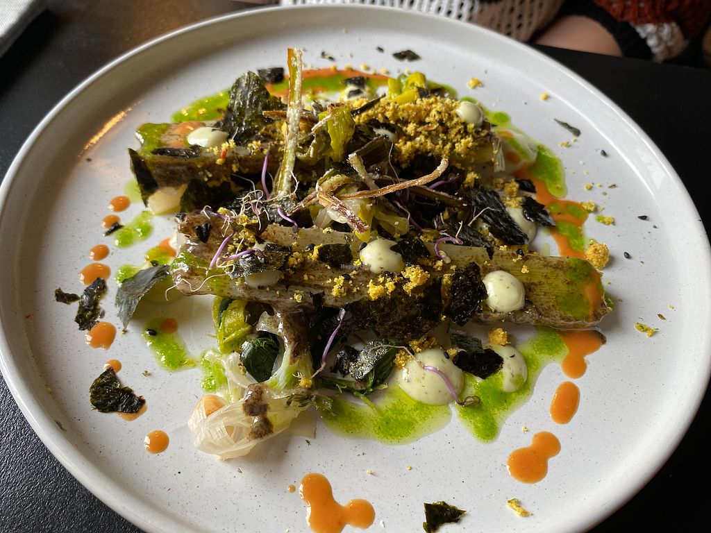 Poireaux vinaigrette Mayonnaise wasabi, algues nori, crumble shichimi…