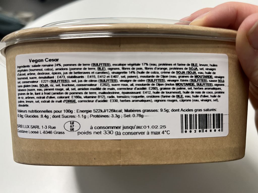 Ingredients list of vegan Ceasar salad