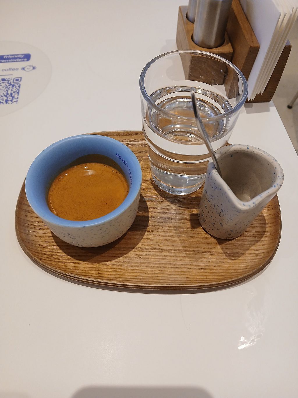 It is a very nice and trendy place. Not a lot of places to sit, so you're not allowed to work on your laptop. I had a masala latte with oat milk and a tortilla with hummus and veggies. Both were delicious!!