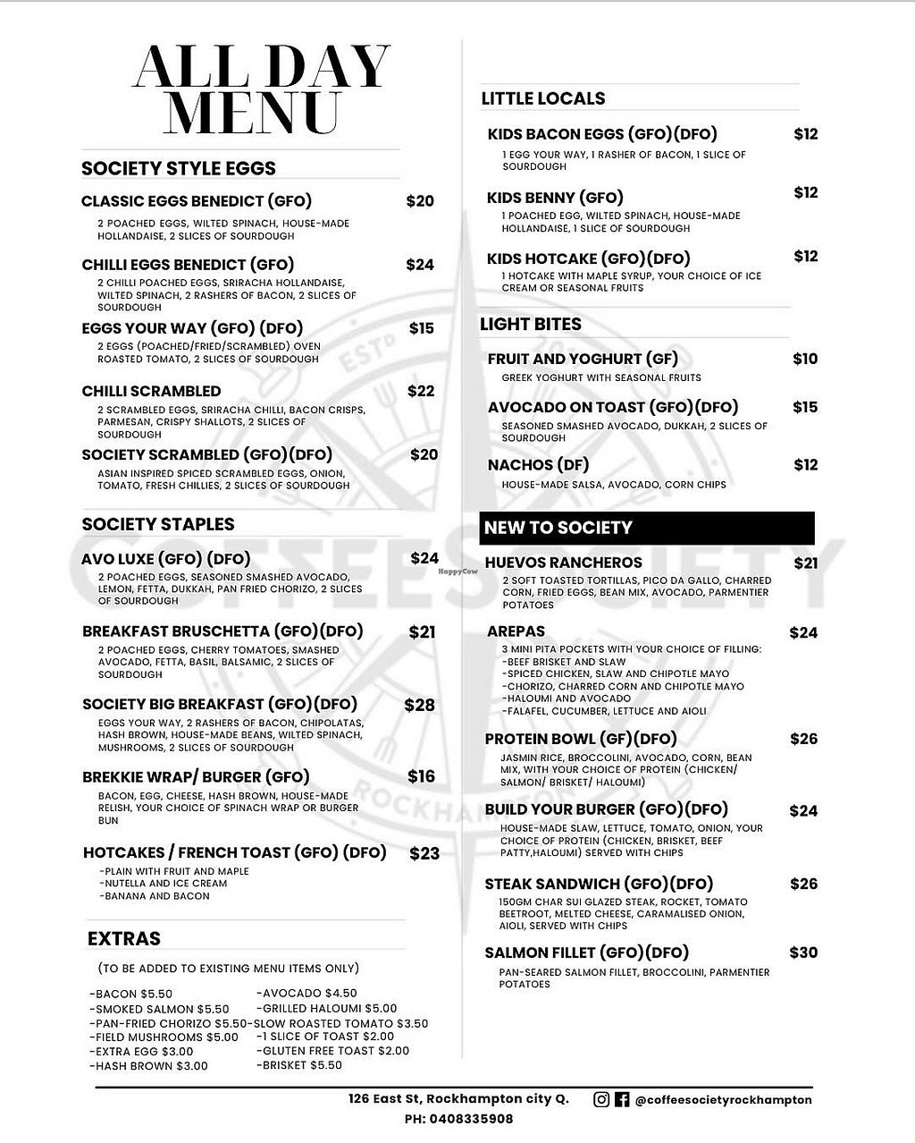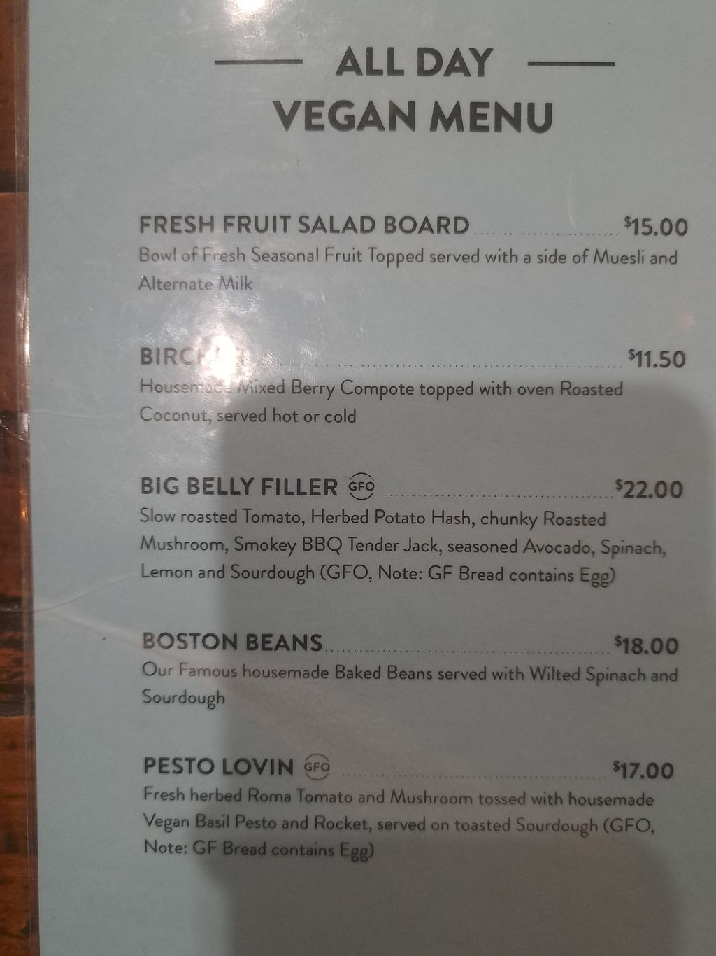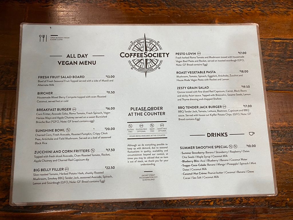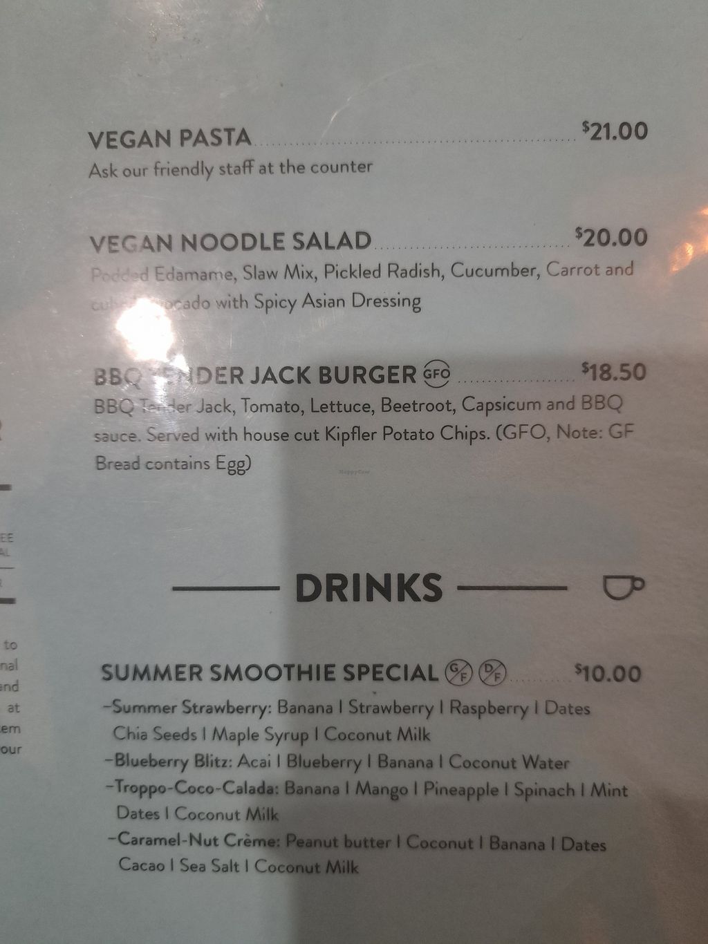 Vegan menu as of November 2021