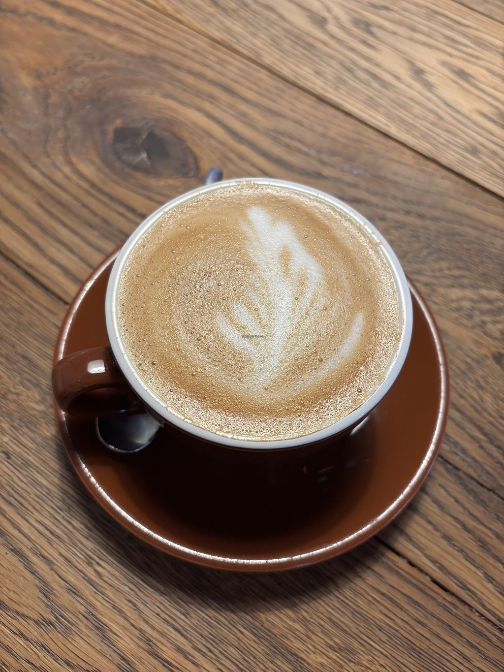 Capuccino with oatmilk, vegan butter bretzel and vegan croissant