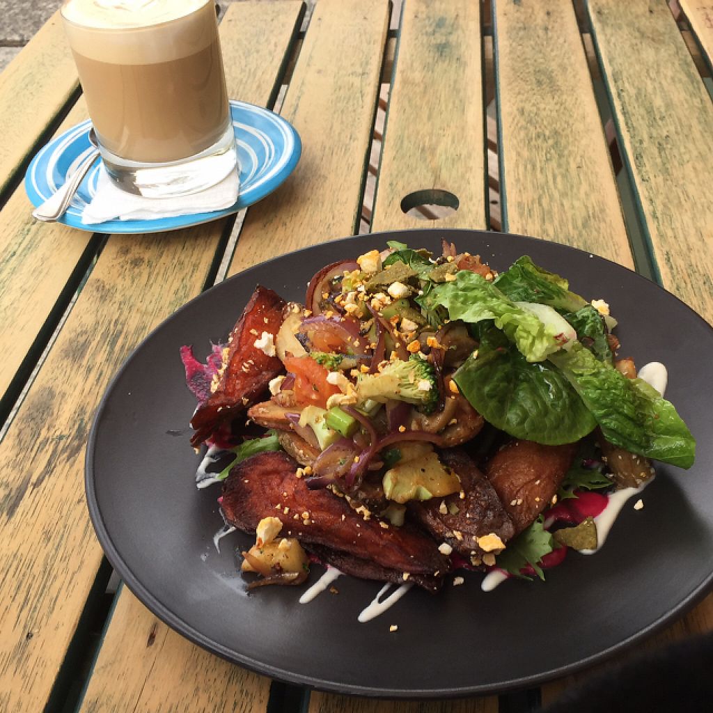 Read moreSo first off: I had their loaded sweet potato fries with mushroom, avocado, beetroot dressing and cauliflower aioli. All very good. Calling them 'fries' feels a bit disingenuous (they're really big wedges of sweet potato) but they were cooked perfectly. I feel the beetroot sauce and aioli could have stood to be a bit stronger in flavor, but the avocado was perfect. Lemon and avocado is a fantastic flavor combination and the green peas added in worked a treat. All in all the food was very good.
