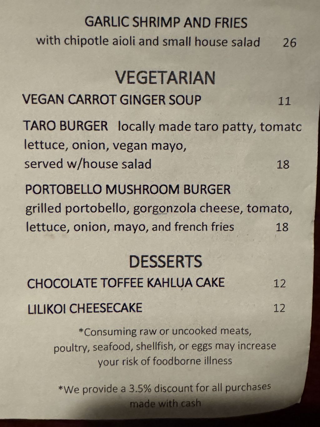 Cons: No vegan desserts