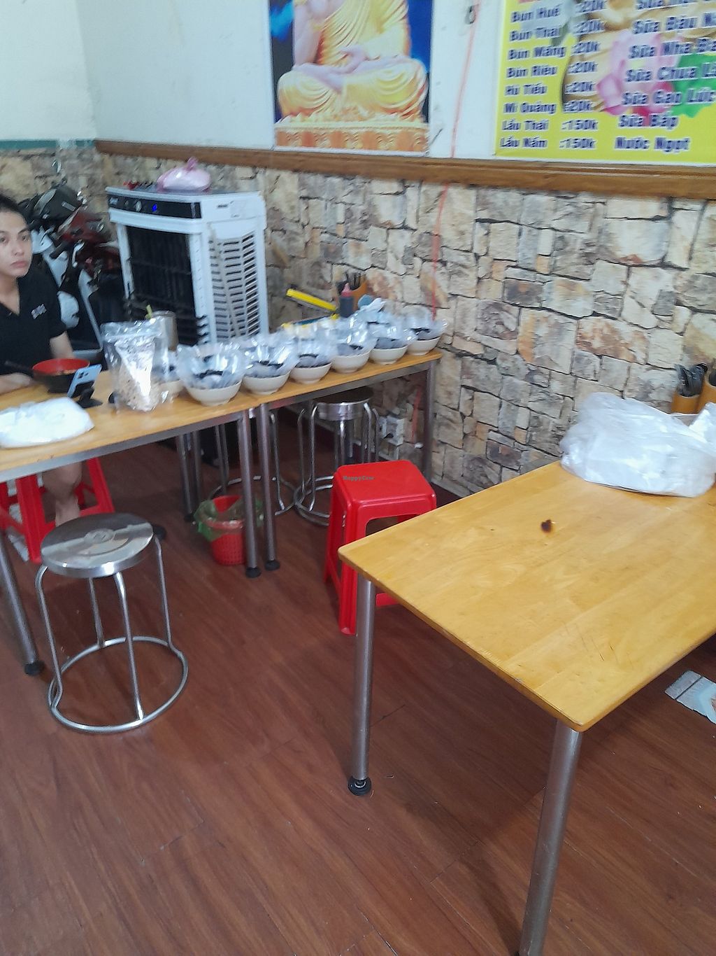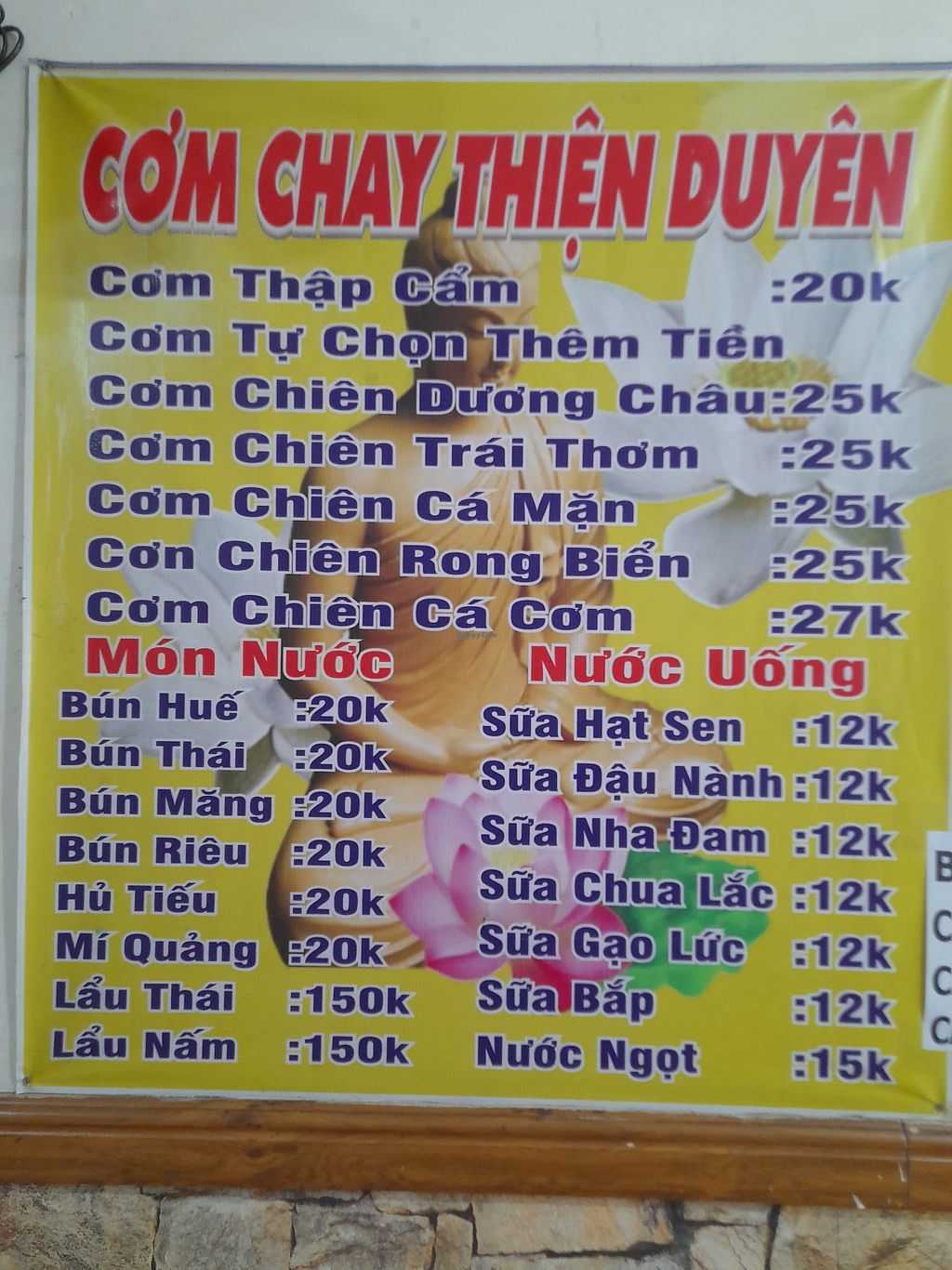 Menu on the wall. All vegan. In Vietnamese only